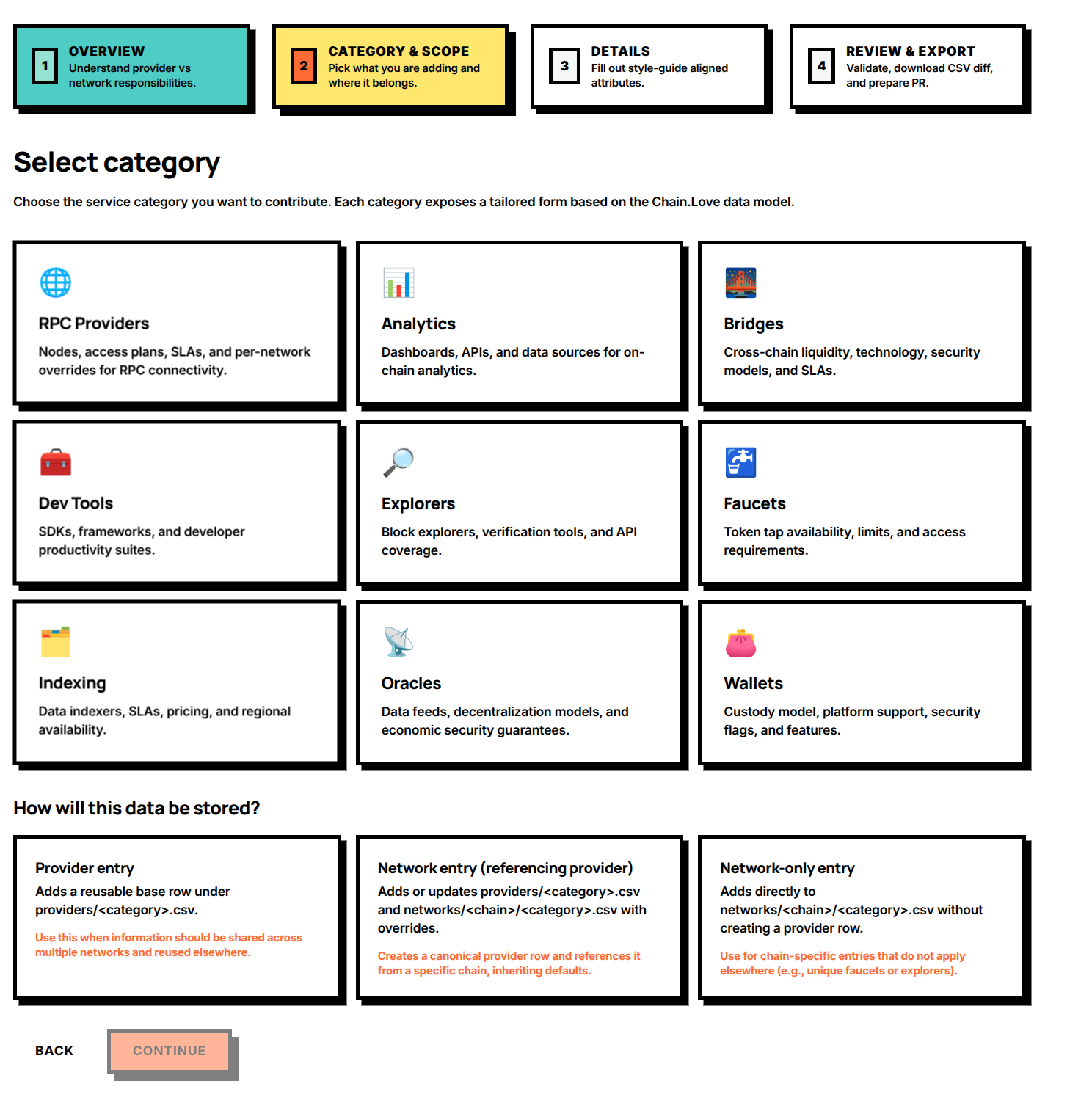To learn more about `How will this data be stored?` part - feel free to check the [Examples](https://chain-love.gitbook.io/chain.loves-toolbox/contributing/open-source-database) section in the Open-source database documentation page.